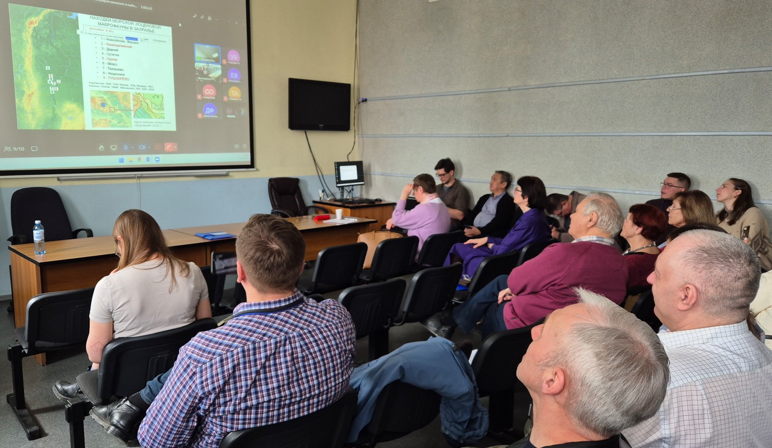Д.г.-м.н. И.Д. Зольников (ИГМ СО РАН) обозначил проблемы обновления четвертичной региональной стратиграфической схемы Западно-Сибирской равнины. К.г.-м.н. Т.П. Малышкина (ИГГ УрО РАН) выступила с онлайн-докладом о биостратиграфическом положенит комплекса морских позвоночных из Среднего Зауралья по диноцистам.